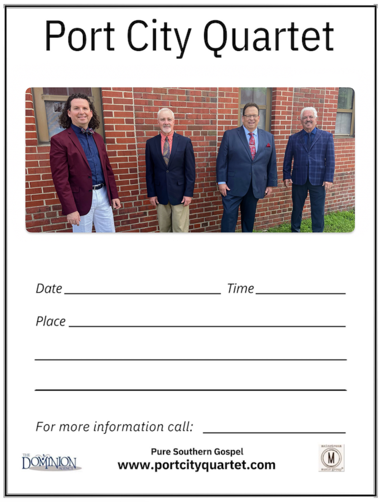 To ensure a successful concert with Port City Quartet, it is advised to do as much advertising for the event as possible to ensure the public is made aware of this event.